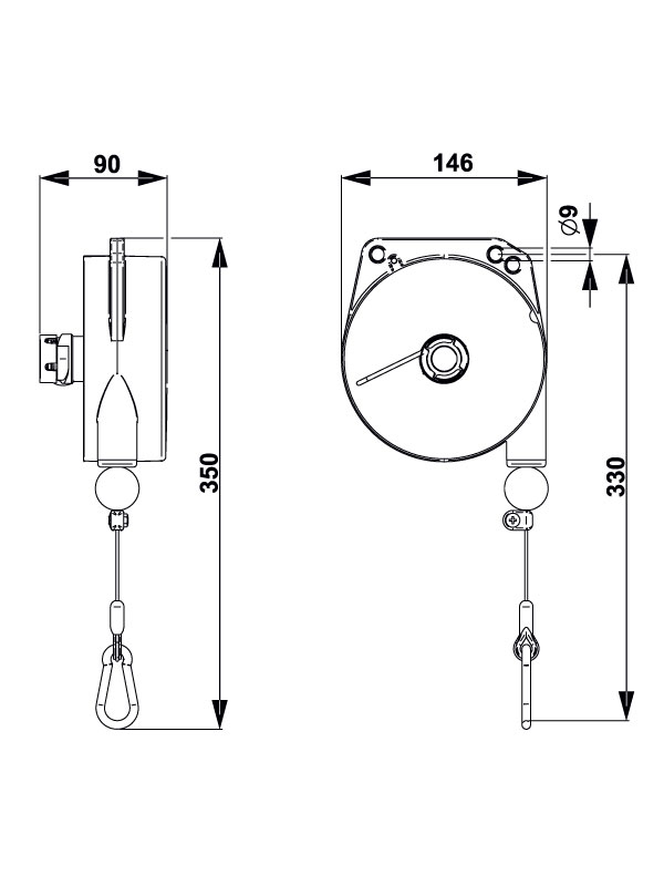 TECNA balancers make tools nearly weightless, reducing operator fatigue and improving safety and ergonomics. As the tool is repositioned the stainless steel cable extends and retracts smoothly from the aluminum housing, providing a full range of motion. Tension adjustment is easy and precise.