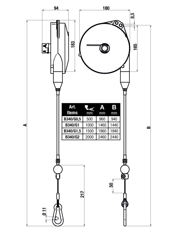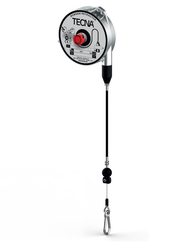 TECNA B340/G2 Bowden retractor FOR SALE at Weld Systems Integrators. The TECNA Bowden retractor model B340/G2 features an aluminum housing, a Bowden cable length of 78.74 in. (2000 mm), stroke length of 98 in. (2500 mm), and suspends the tool on stainless steel wire cable for 22.05 – 30.86 lbs. (6.0 – 8.0 kg) loads. Bowden cables are a type of flexible cable inside a composite housing.